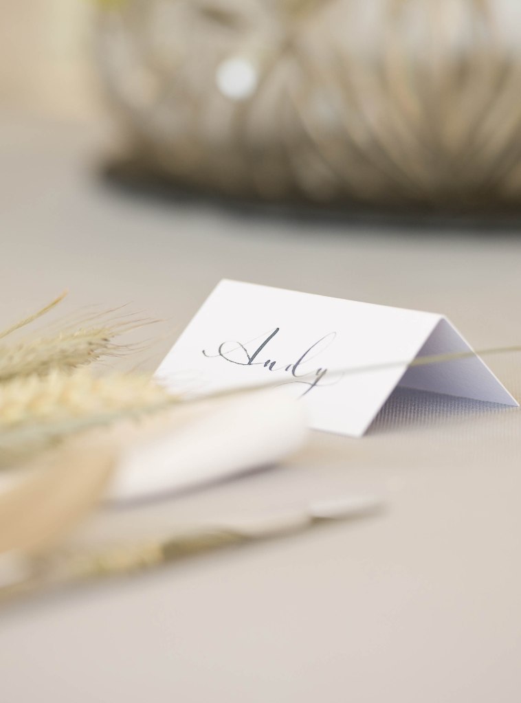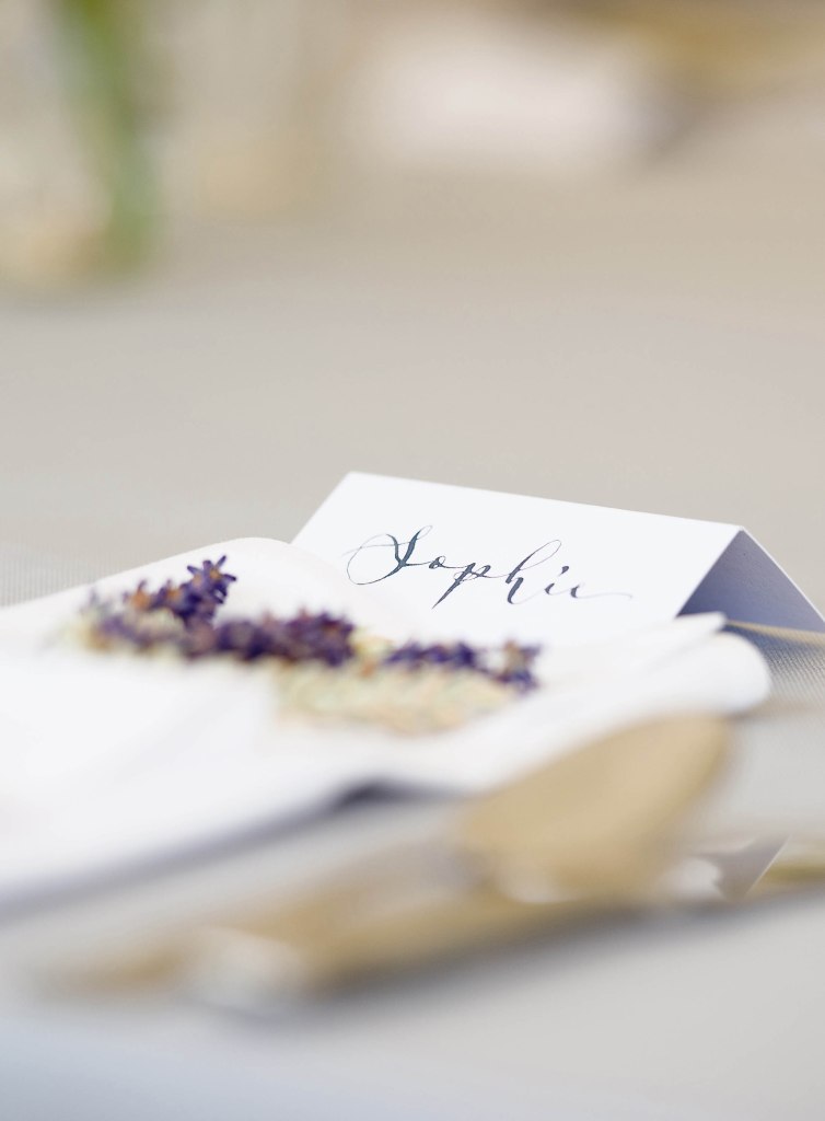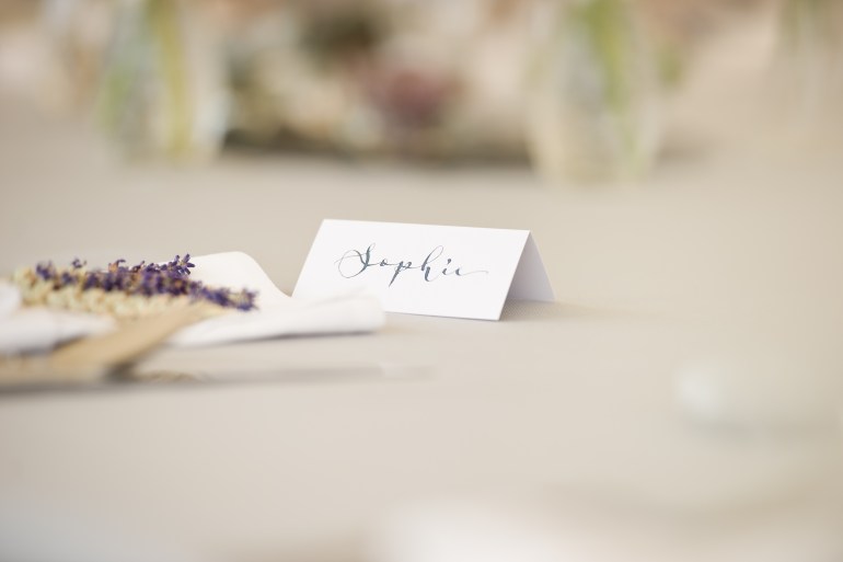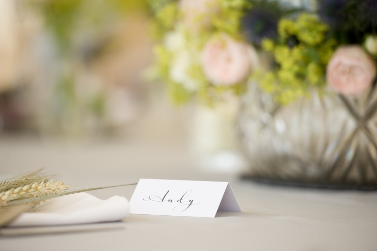 Classic and clean modern calligraphy for a beautiful marquee wedding in the Herefordshire countryside. The couple’s country garden theme carried through with these beautiful place cards, in a shimmery midnight blue ink to compliment the bride’s bouquet and bridesmaid dresses.