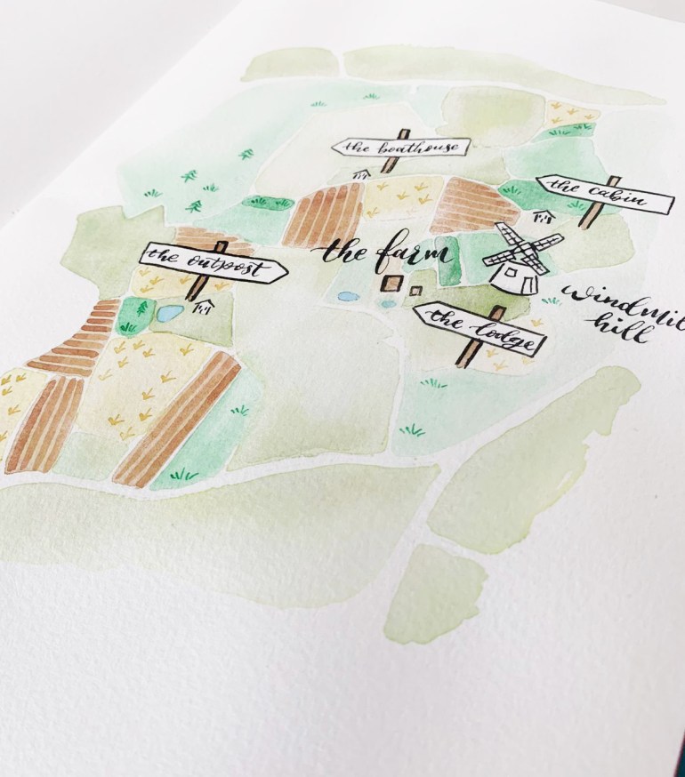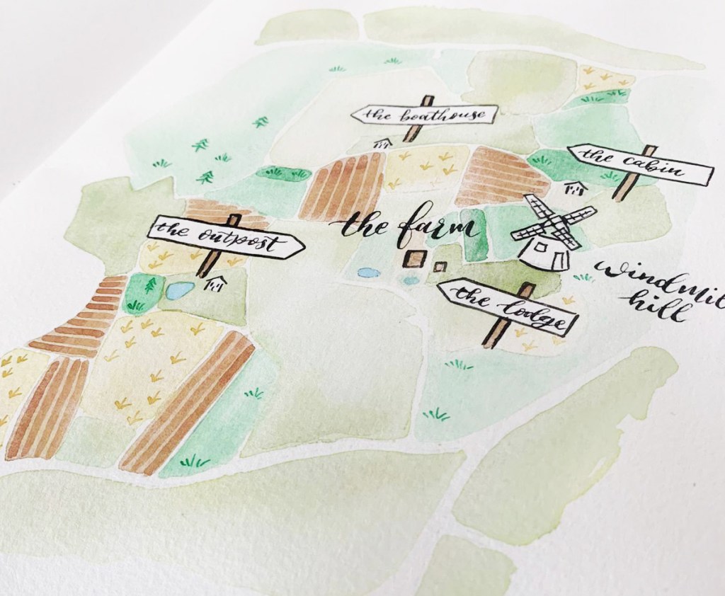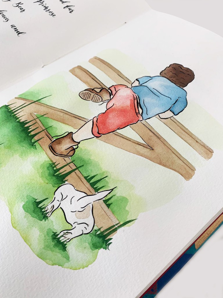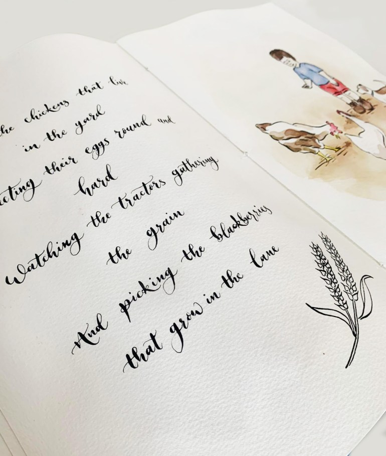 Telling the story of one little boy’s adventures around the farm. Setting the scene with a map of farm, and imaging all the mischief one little boy and his dog can get up. A christening gift, this project was a joy from start to finish, with all elements crafted by hand including hand-painted illustrations, hand lettering and hand sewn bookbinding.